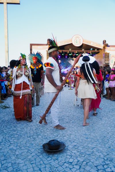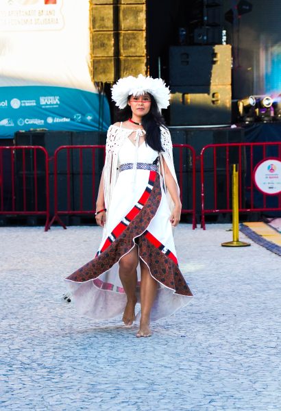 Neste sábado (07/02), o desfile “Territórios do Vestir: Tradição, Inovação e Autonomia Indígena”, assinado pelas estilistas Ludimila Alves e Puhuy, integrou o I Festival do Artesanato Baiano Indígena e da Economia Solidária (FABI), realizado na Aldeia Indígena Coroa Vermelha, em Santa Cruz Cabrália (BA).
